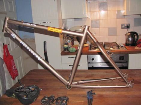 I went for Vauxhall Metallic Brown paint which, although not intended, is pretty close to the original colour it came in. I have also fitted a Richey Logic headset (£9), 2x bottle holders and bottles (£3.99 each), hard plastic mudguards in black (£17.99) and made my own bike stand using a couple of cable ties and an old inner tube.