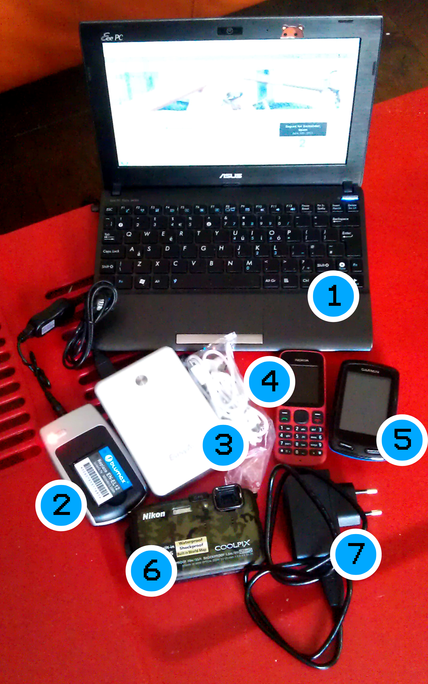 Before choosing the charging method (as I alluded to in this post), I carefully considered what tech was needed and what could be done to improve their battery life first and foremost. We have whittled it down to one GPS, one Camera, one phone and one Netbook.