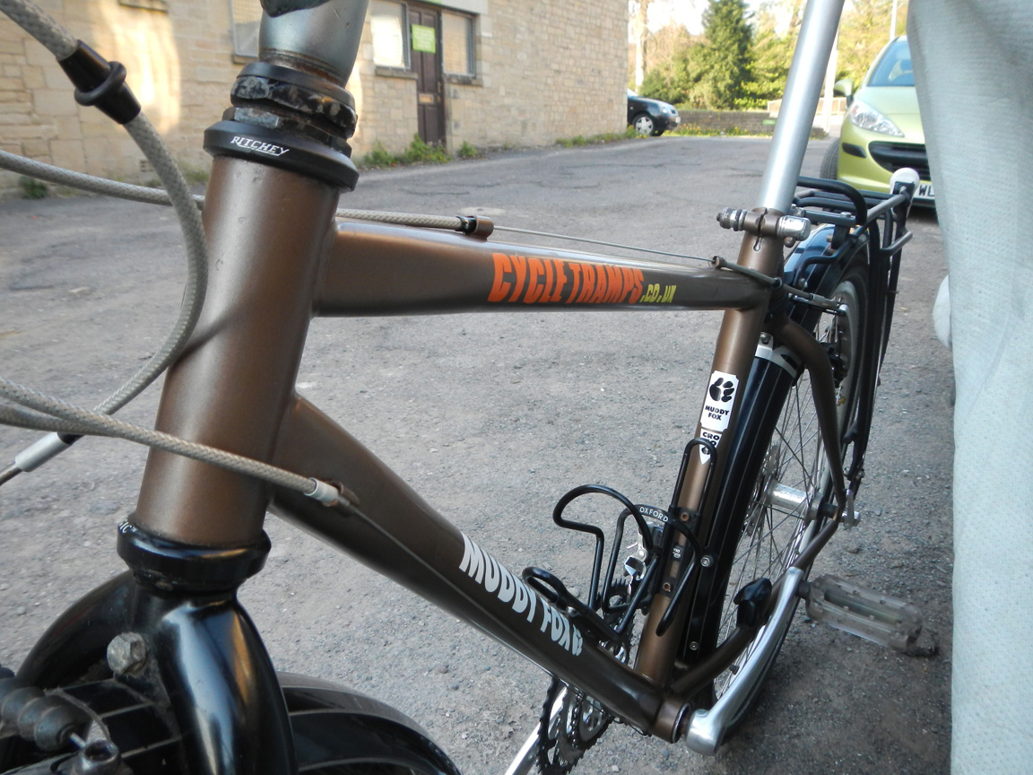 I’m not sure it will work on mine as it has cantilevers, and therefore uses the cable guide, although from your picture it looks like there is clearance for the cable. One more question if that’s ok – is your monostay slightly ovalised? It looks like it might be (as is mine) – I presume that it’s not a problem? I guess that with longer bolts one could secure it around the downtube if the pannier reaches.