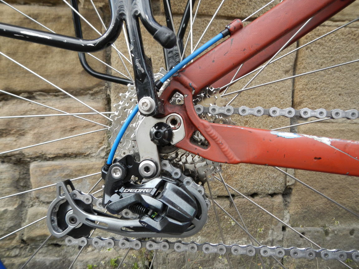 - Rear derailleur: Shimano Deore M592 Shadow 9 Speed (Long cage)