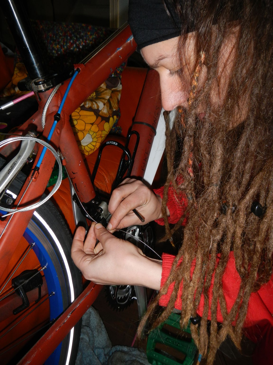 Anyway, I have learnt so much I don’t even know where to start! Having stripped my bike down to just a frame, put in a new bottom bracket, new pedals, forks, handlebars, brakes, gears, racks and my old wheels back on with new fancy pants tires, I now feel super confident doing repairs on my bike and have bonded with it in a way only a creator can. The only thing I didn’t do myself was the spokes ; my local bike shop rebuilt my old wheels with nice new spokes for me – that was one task I thought was best left to the experts.