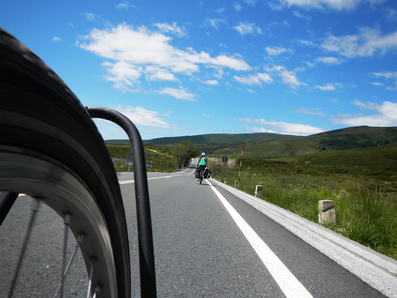 The first 20 miles or so of the day were relatively easy, apart from the fairly hairy negotiation of a number of roundabouts and a bustling dual carriageway, prompting Neola to ask “are we supposed to be cycling on these roads?”. Unsure of the answer to that, but with no plan B, we pressed on regardless, and took motivation from a passing a car with Blues Brothers-style loudspeakers on the roof (not a Chevrolet Montecarlo, but a rather less impressive Citron Piccasso) blasting out music and undecipherable Spanish chatter.