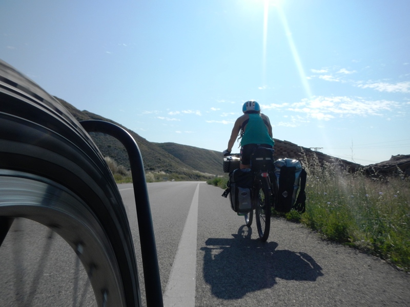 We’ve spent a lot of time so far in Spain perplexed about why nobody is around or why nothing is open and today was no different. It was about 10:30 now and starting to get hot, neither of us had anything to eat and we were getting hungry. After passing through a few small towns that were completely empty we eventually arrived at a small town along our pre-planned route which we’d now re-joined. After finding out the town was sans-shop we found a bar, had some sandwiches, a rest and a cold drink. I’m not sure how the landlady managed to interpret Neola’s Spanglish for ‘water’ to mean ‘Coca-Cola’, but that’s what we got, and we were glad for it.