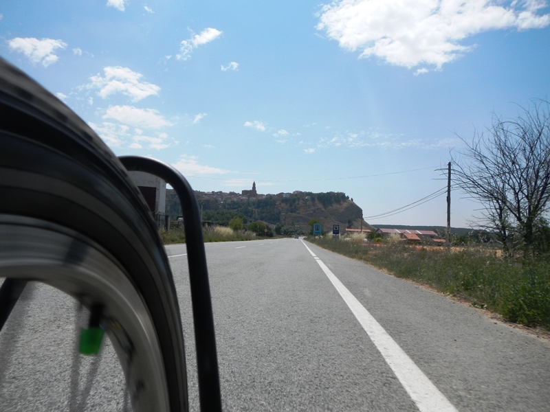 After those glorious flat 15 miles, this is where the next error occurred. We’d planned the route using Google maps and uploaded it to the GPS to follow, which so far has worked fine but we had not taken into account roads that had changed or been moved, which is exactly what we encountered. We stopped for a while to try and figure out where to go and after cycling through some bushes onto a dirt road, we continued on the un-mapped, un-signposted road to nowhere which appeared to be in vaguely the right direction. After a couple more stops and a fair bit of time cycling south and helplessly away from our target, we found the right road and continued in the direction of Pamplona.