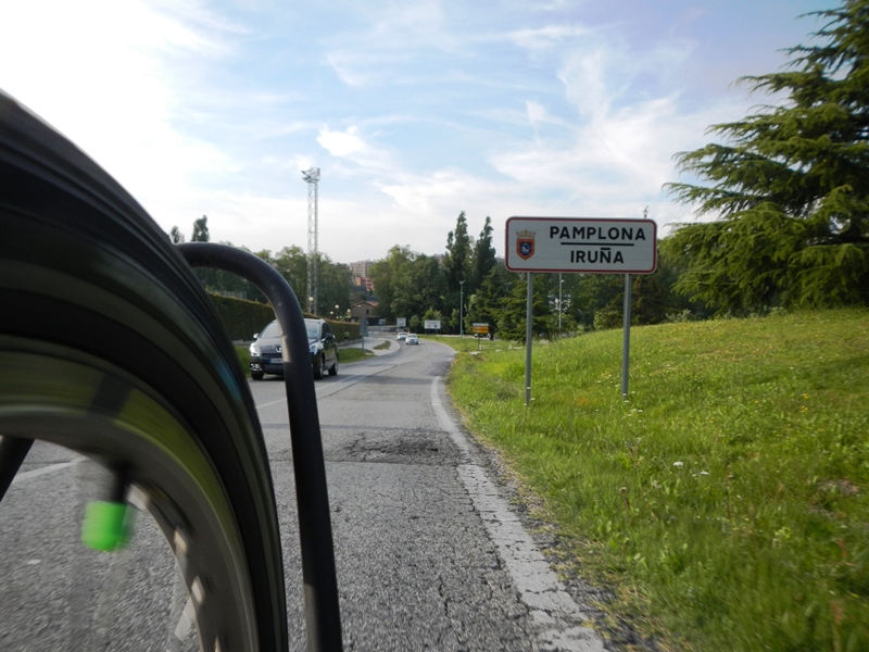 But, after finding a route that back-tracked where we’d been for a few miles followed by a bit of a loop round, we decided to take that safer option, but we were still 14 miles away from our campsite for the night and it was nearly 7pm. We finally managed to penetrate Pamplona, which was very, very busy.