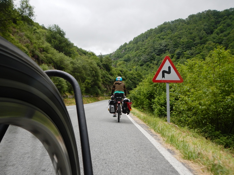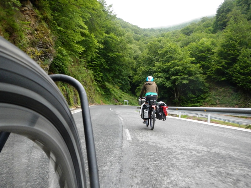 Well rested, we set off on our merry way to France the next morning to tackle our cycle over the Pyrenees. For most of the journey, we were following the Camino de Santiago pilgrim route, which was full of hikers making their way in the opposite direction to us, mostly carrying sticks and sporting gruff beards and weathered looks, like they’d been walking non-stop for years. Maybe they had.