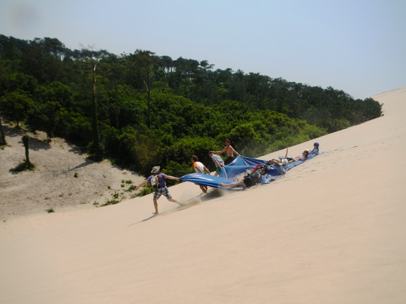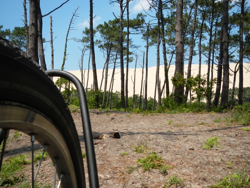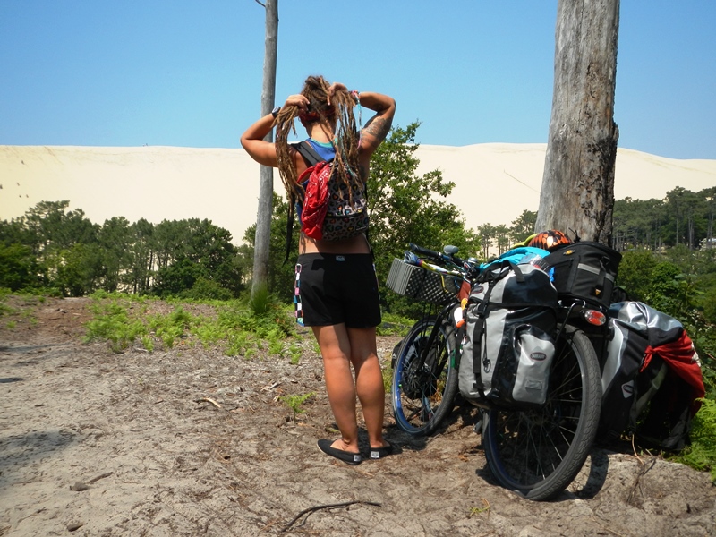 After our happy evening of tinned beans and lake swimming, we slept in until 10 the next morning and casually found our way back to the Eurovelo 1, aiming today for Dune de Pyla, Europe’s biggest sand dune.