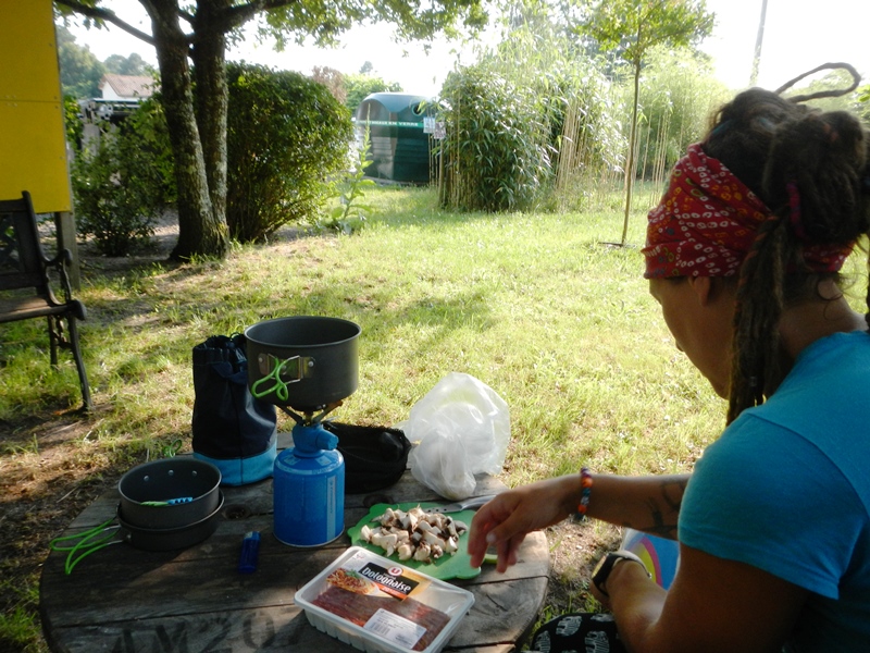 When we arrived, we’d only cycled 45 miles but it had been a long hot day and we were both shattered. We had a quick cool down/bath in the pool, made spag bol for tea with an entire bag of cheese (waste not, want not), got eaten alive by mosquitos (I’m also winning the insect bite game with a current total of 23 bites) and enjoyed another beautiful sunset. Happy days 🙂