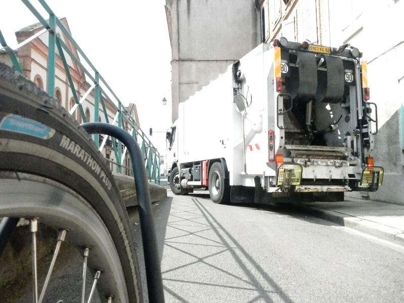 With the sky grey and weather cool it was another fairly relaxed day on the Canal de Garonne. But with the constant flat canal cycling and unchanging scenery, beautiful as it was, we were starting to get a little bored. Until lunchtime, the only major occurrences were getting stuck behind a bin lorry that smelt of dead bodies and lots of speculation on why there were so many ramblers on the perfectly flat canal in full hiking gear complete with OS maps and titanium walking poles. There were no mountains or even hills within a 50 mile radius. Maybe it’s a scene thing we just don’t get.