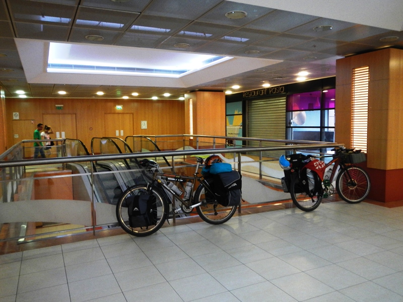 And after consulting it we found which canal we needed and headed in that direction. Neola needed to check her emails for work as it had been a few days since we’d had internet plus we also needed something for tea so we took a little detour to McDonalds (for the free WiFi, not the Croque McDo this time) and to a shopping centre supermarket where I got escorted outside with our bikes and then approached by a man who looked suspiciously like he’d just stolen a block of cheese, smelled quite strongly of beer and started chatting to me about French cinema.