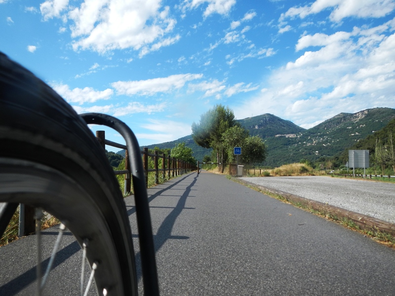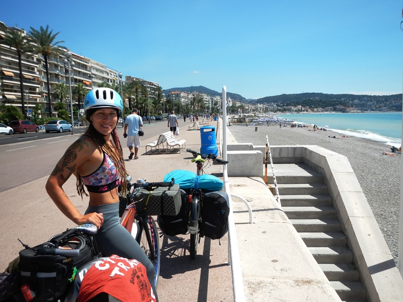 One quick but damp tent destruction later we were back on our way, south towards Nice. The roads were still very wet and after hearing a lorry locking its wheels on the approach to a roundabout we were on, we opted to take the longer but substantially quieter and relaxing cycle route to Nice.