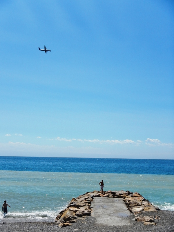 Arriving on the sea front in Nice around 12 we sat for a little while in the sun, which by this point was pushing 35 degrees, watching the planes bank round and line up for landing at the airport, which was pretty much in the sea.