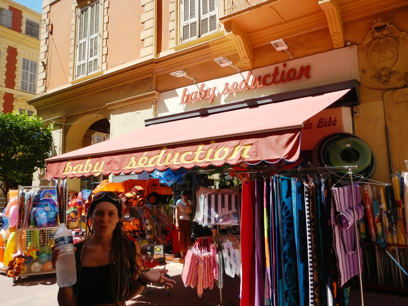 After a picnic of bread, cheese and beer on a park bench by the harbour, we caught the train back to Menton where the only interesting thing we could find was a shop oddly called “Baby Seduction”. Probably something to do with the Catholic Church.