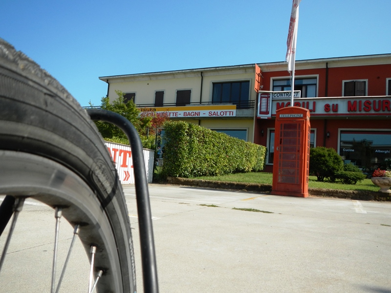 The landscape was mostly (only) agricultural but, interspersing the cornfields, we did pass through a few quaint little towns. We stopped for water at a gorgeous town called Mantova and cycled past an inexplicable red phone box and a tiny airfield in the middle of nowhere. Apart from that it really was just cornfield after cornfield.