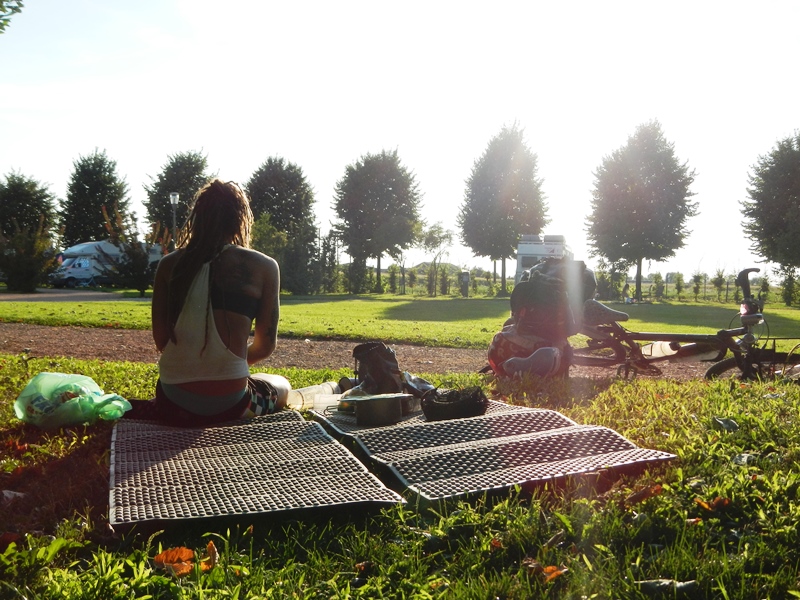 I’d left poor Nev tramping in Pavia on his own for a few days while I went back home to be a bridesmaid at my best bud’s wedding. After the truly horrendous, massively sleep deprived 16 hour train journey home from Milan (did I mention my insane fear of flying?), I got to enjoy a bit of guilty luxury. It was a brilliant and heart warmingly romantic wedding totally worth making the trip home for, but the posh hotel and white flurry bath robe felt totally alien after 6 weeks of camping and within a day of being reunited with my lovely Nev tramp, I had 6 new mosquito bites, my French manicure was half chipped off and dirt was showing through my grubby fingernails. I truly am a tramp at heart.