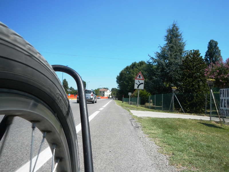 Although arriving in Venice by canal would have been highly appropriate, the canal path eventually got too bumpy and slow so we headed back onto the road for the last part of the journey where we saw my favourite Italian road sign yet: sad kooky face.